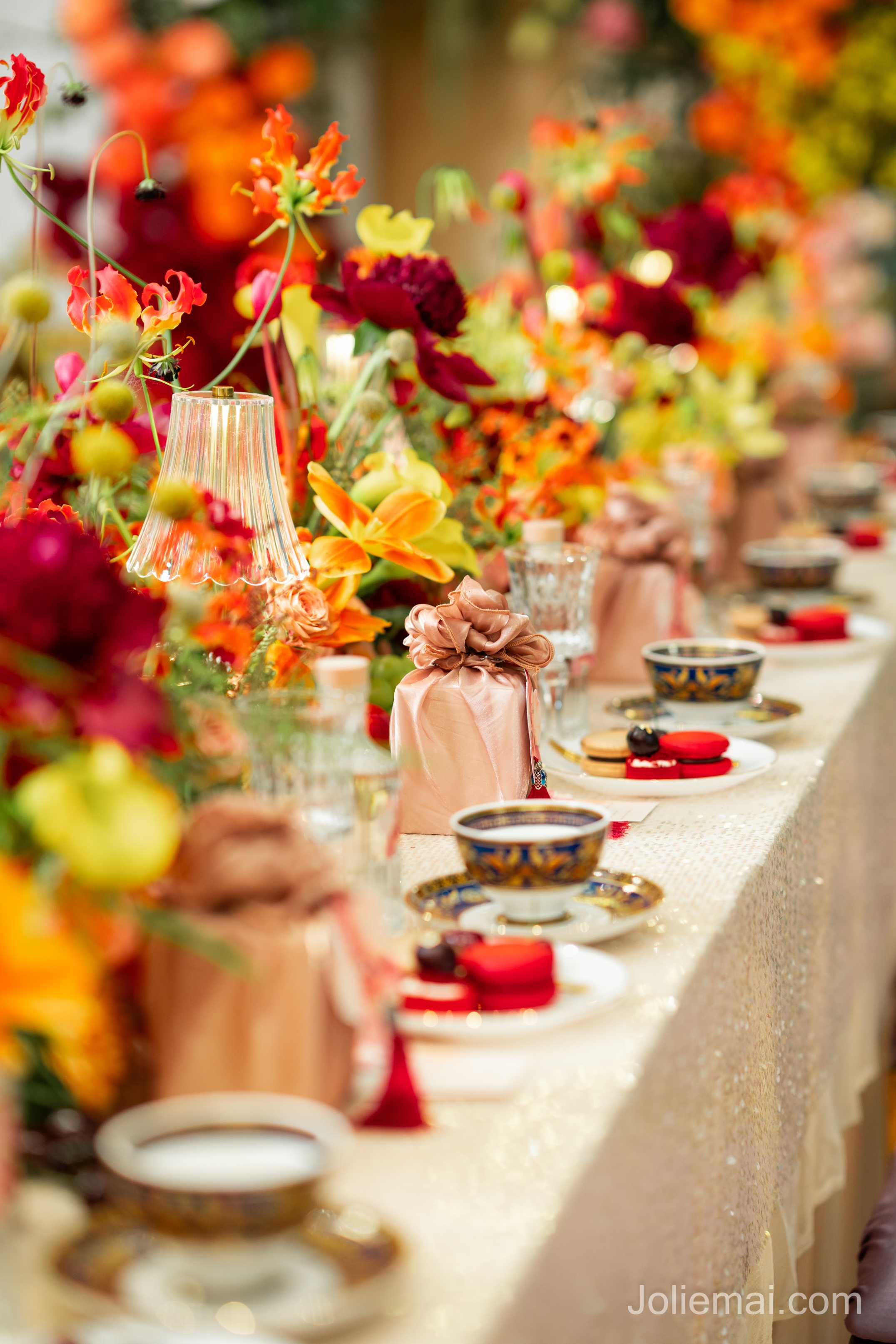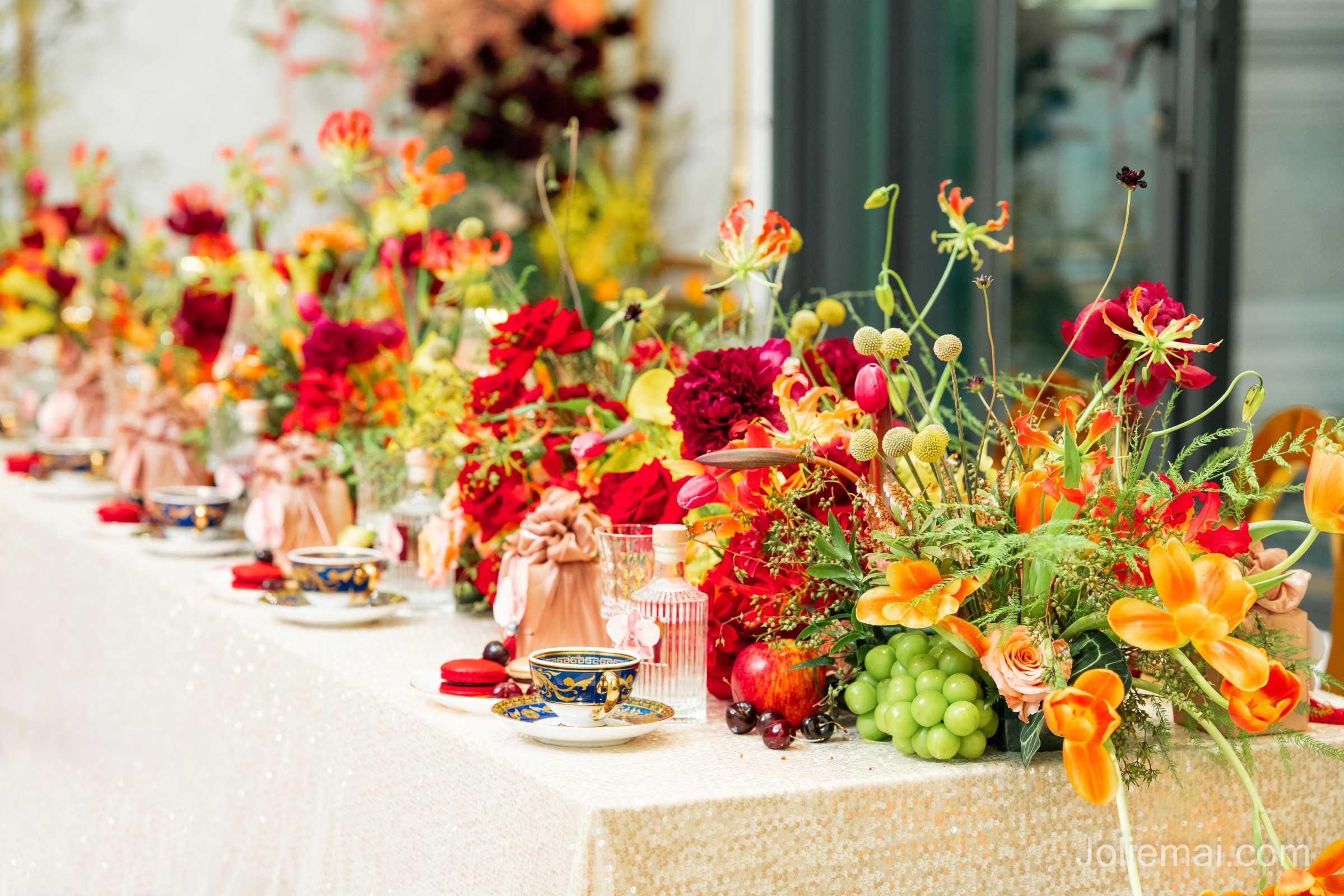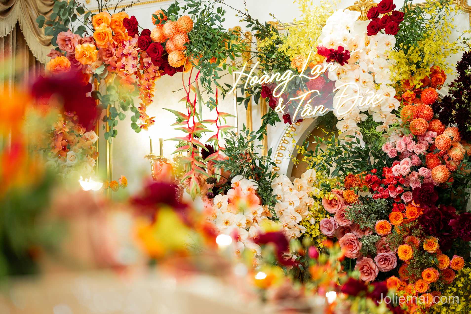 Gói Cao Cấp: concept thiết kế riêng, đồng bộ toàn bộ lễ cưới (gia tiên + tiệc cưới), hoa nhập khẩu, quay chụp chuyên nghiệp.